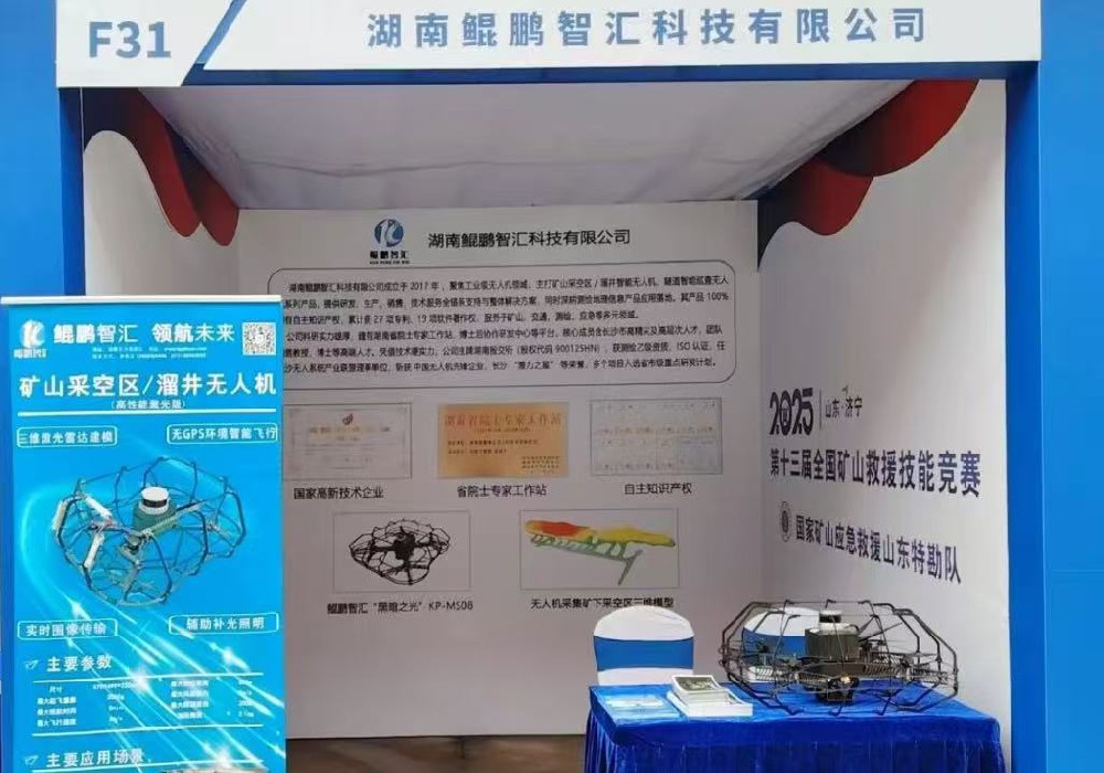 10月14日,第十三屆全國礦山救援技能競賽裝備展在山東濟寧盛大啟幕,應急管理部副部長、國家安全生產應急救援中心主任宋元明宣布開幕。在這場匯聚行業頂尖力量的盛會中,鯤鵬智匯“黑暗之光”KP-MS08礦井與隧道智能無人機憑借國際領先的硬核性能和技術完全自主可控的優勢,成為參展領導與嘉賓的“焦點裝備
